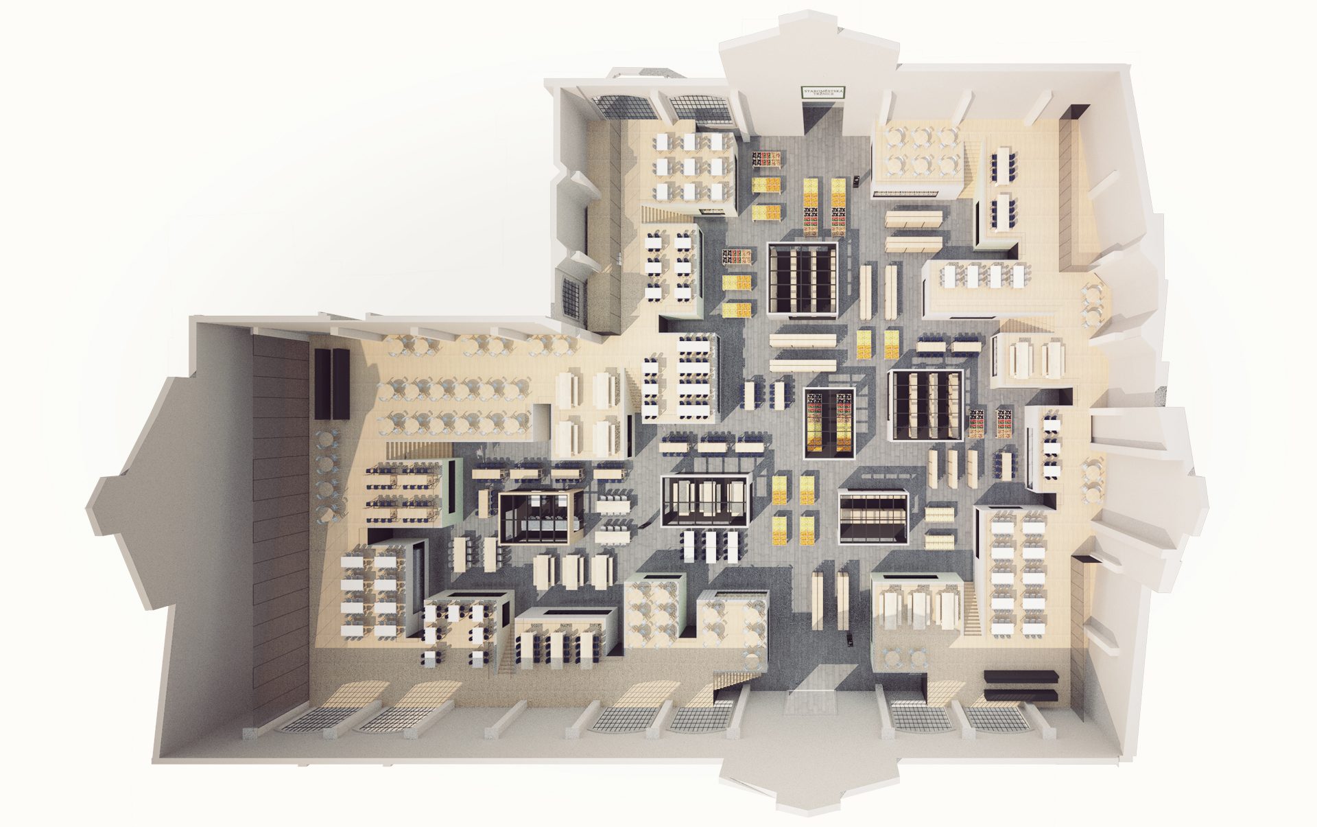 The City of Prague plans a reconstruction of the Staroměstská tržnice, a big marketplace located just by the Wenceslas square. For an unnamed client, who wishes to take part in the tender, we created a design of the reconstruction with the aim to restore its original function.