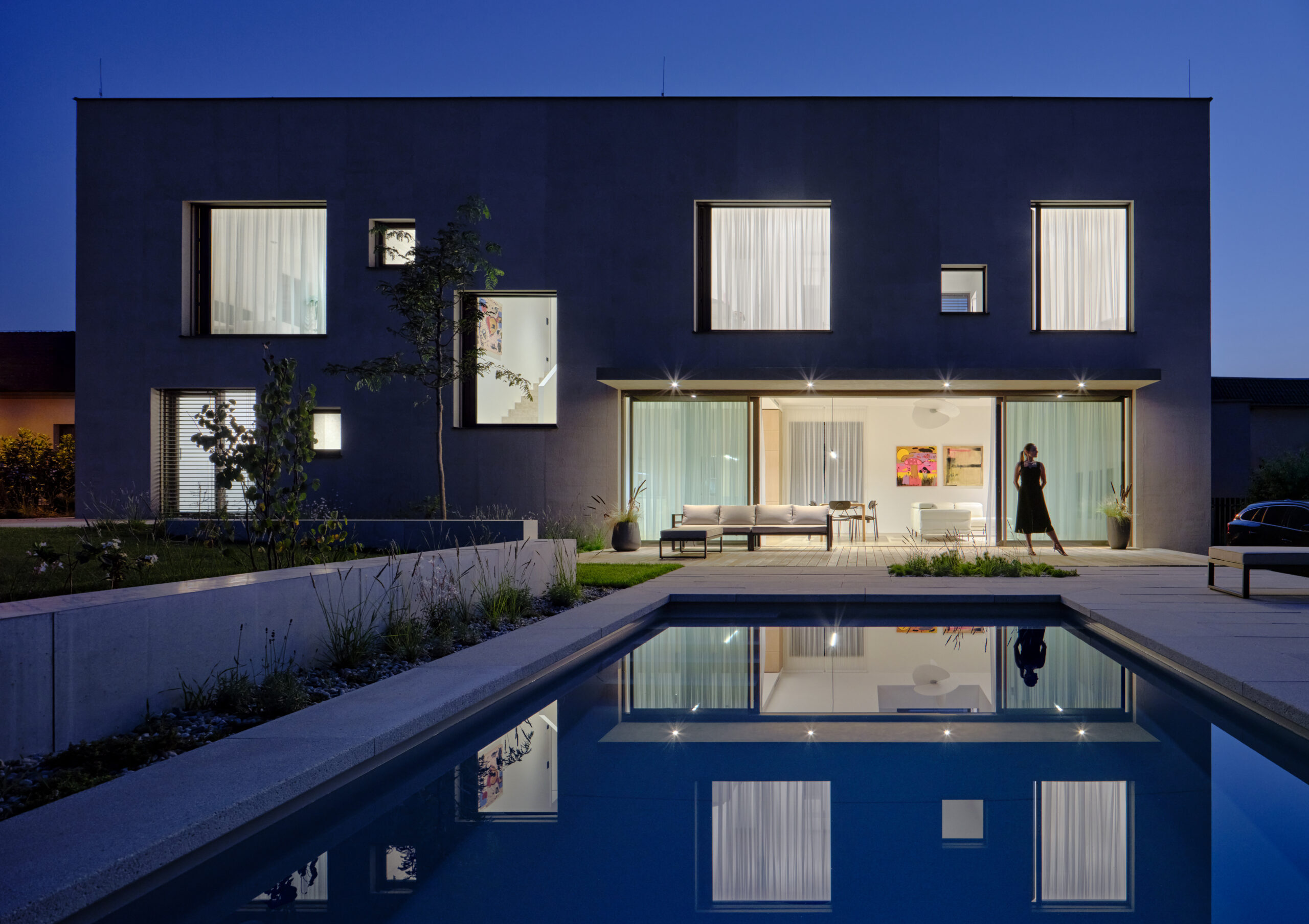A family house in Prague’s Čakovice district combines minimalist form with a clear spatial layout.