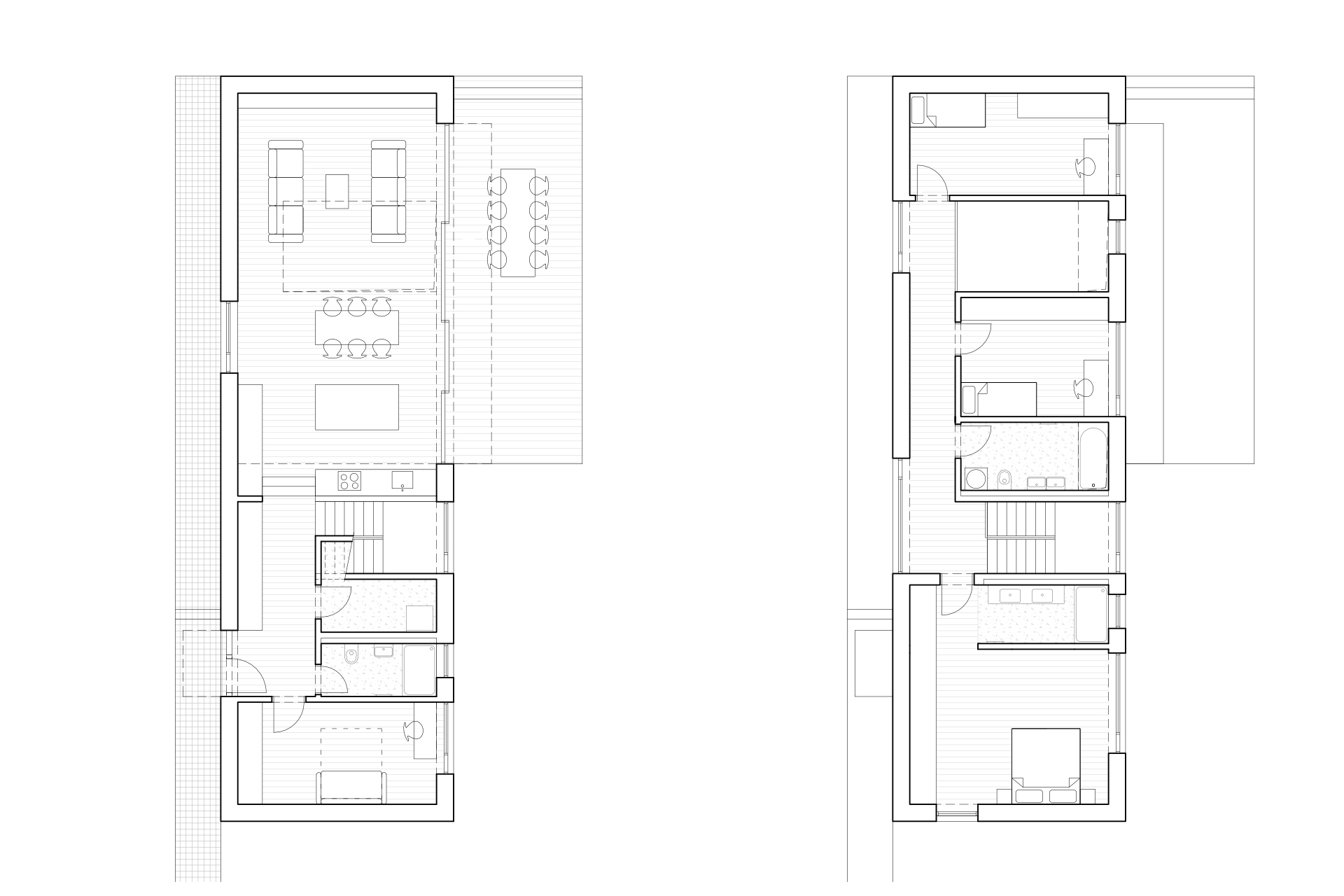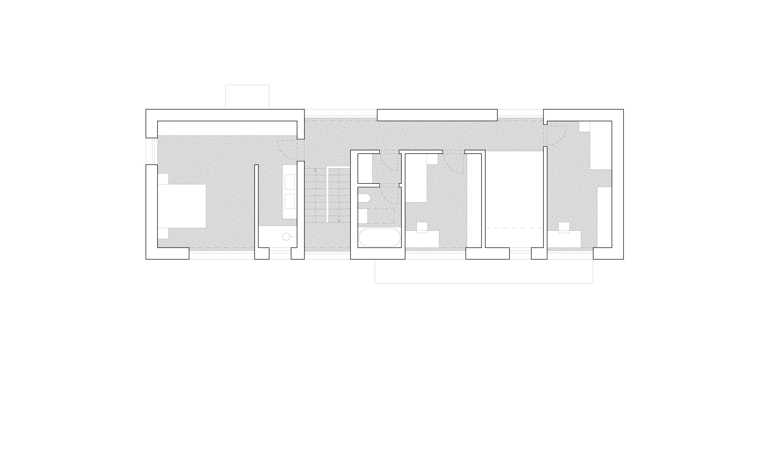 Daylight plays a key role in the design. Thanks to the considered arrangement of the upper floor, western light also reaches the east-facing living room. As a result, the space is filled with natural light throughout the day, allowing its atmosphere to shift with the time of day and season.