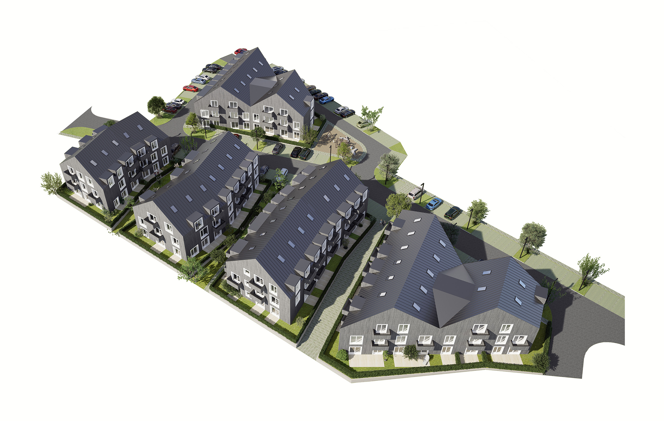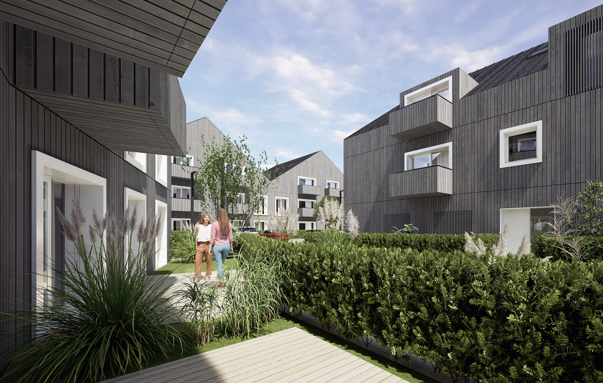 Lokalita bytového komplexu č. I je charakteristická svou diferenciací do dvou výškových úrovní. Navržená porézní struktura uspořádání domů spolu s umístěním do mírného svahu nabízí uživatelům komponované výhledy na vodní plochu zasazenou do krajinného rámce jihočeské horské krajiny. V návrhu se uplatňuje hierarchie postupného zklidňování od místní obslužné komunikace směrem k přehradě. Jedním z hlavních aspektů této koncepce je minimalizace dopravy uvnitř areálu a nerušené vnímání prostoru díky umístění odstavných stání pod přístřešek využívající výškový rozdíl mezi oběma částmi.