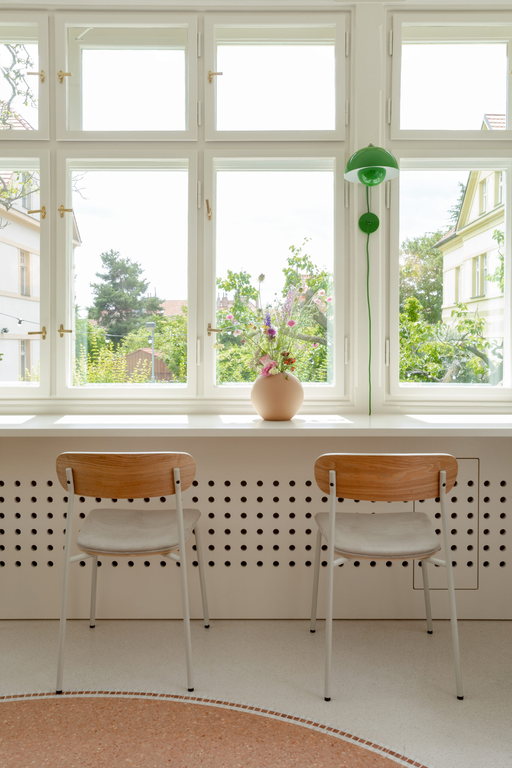 Zachování kouzla prvorepublikové vily bylo od počátku rekonstrukce Vily 63, kavárny na pomezí Vinohrad a Vršovic, jednou z priorit. V prostoru jsme proto ponechali a repasovali co nejvíce původních prvků, a to včetně oken, dveří, radiátorů nebo mřížek pro vzduchotechniku.