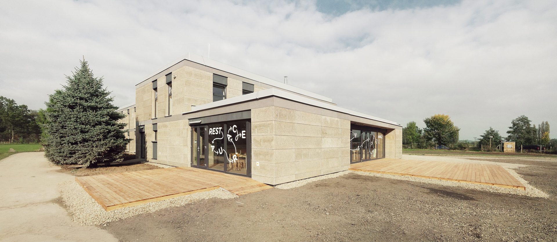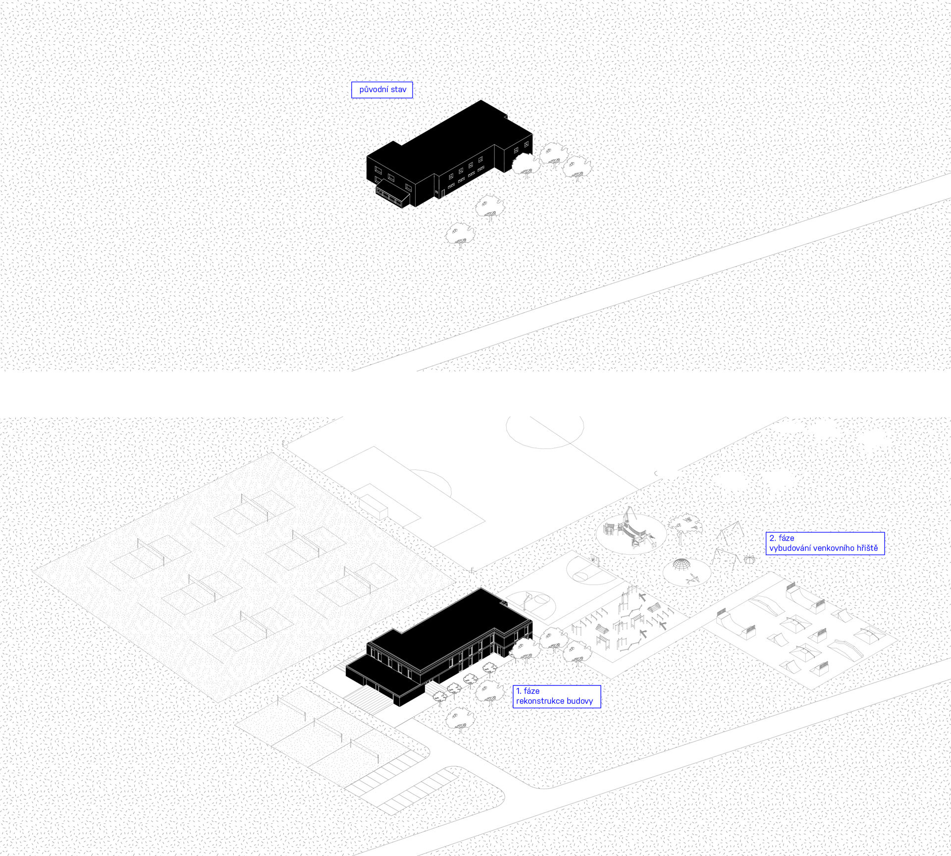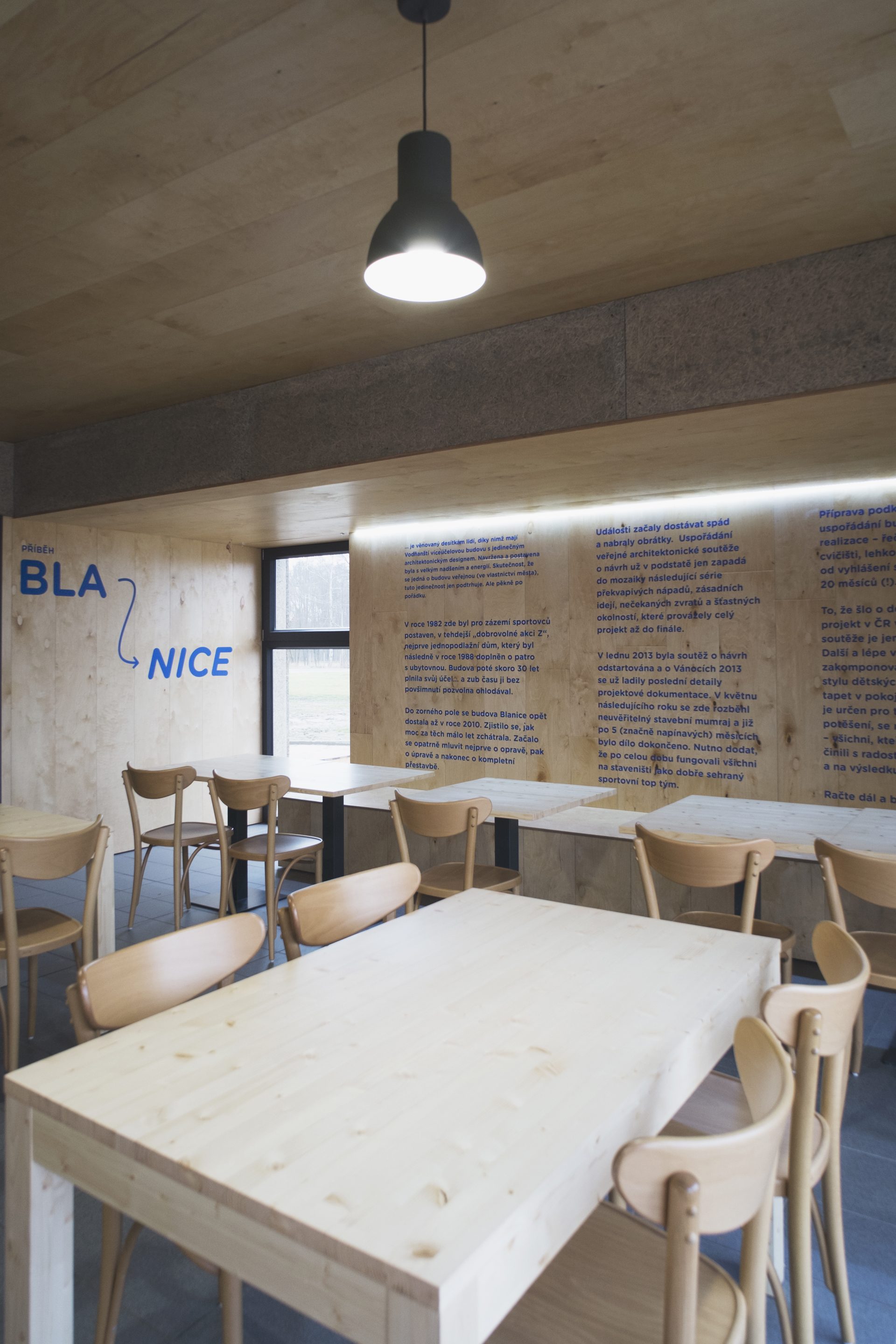 Příběh sportovního areálu Blanice je věnovaný desítkám lidí, díky nimž mají Vodňanští víceúčelovou budovu s jedinečným architektonickým designem. Navržena a postavena byla s velkým nadšením a energií. Skutečnost, že se jedná o budovu veřejnou (ve vlastnictví města), tuto jedinečnost jen podtrhuje. Ale pěkně po pořádku. V roce 1982 zde byl pro zázemí sportovců postaven, v tehdejší „dobrovolné akci Z“, nejprve jednopodlažní dům, který byl následně v roce 1988 doplněn o patro s ubytovnou. Budova poté skoro 30 let plnila svůj účel… a zub času ji bez povšimnutí pozvolna ohlodával. Do zorného pole se budova Blanice opět dostala až v roce 2010. Zjistilo se, jak moc za těch málo let zchátrala. Začalo se opatrně mluvit nejprve o opravě, pak o úpravě a nakonec o kompletní přestavbě. Události začaly dostávat spád a nabraly obrátky. Uspořádání veřejné architektonické soutěže o návrh už v podstatě jen zapadá do mozaiky následující série překvapivých nápadů, zásadních idejí, nečekaných zvratů a šťastných okolností, které provázely celý projekt až do finále. V lednu 2013 byla soutěž o návrh odstartována a o Vánocích 2013 se už ladily poslední detaily projektové dokumentace. V květnu následujícího roku se zde rozběhl neuvěřitelný stavební mumraj a již po 5 (značně napínavých) měsících bylo dílo dokončeno. Nutno dodat, že po celou dobu fungovali všichni na staveništi jako dobře sehraný sportovní top tým. Příprava podkladů a shoda na budoucím uspořádání budovy trvala 2 roky. Samotná realizace – řečeno příslovím těžko na cvičišti, lehko na bojišti – zato probíhala od vyhlášení soutěže po kolaudaci jen 20 měsíců (!). To, že šlo o dosud nejrychleji realizovaný projekt v ČR vzešlý z architektonické soutěže je jen jedna z mnoha zajímavostí. Další a lépe viditelnou je třeba zakomponování městského vizuálního stylu dětských kreseb do obkladaček nebo tapet v pokojích. Skutečnost, že objekt je určen pro trávení volného času a pro potěšení, se nejspíše odrazila na celé akci – všichni, kteří přiložili ruku k dílu, tak činili s radostí, hravostí a nadšením a na výsledku je to poznat.