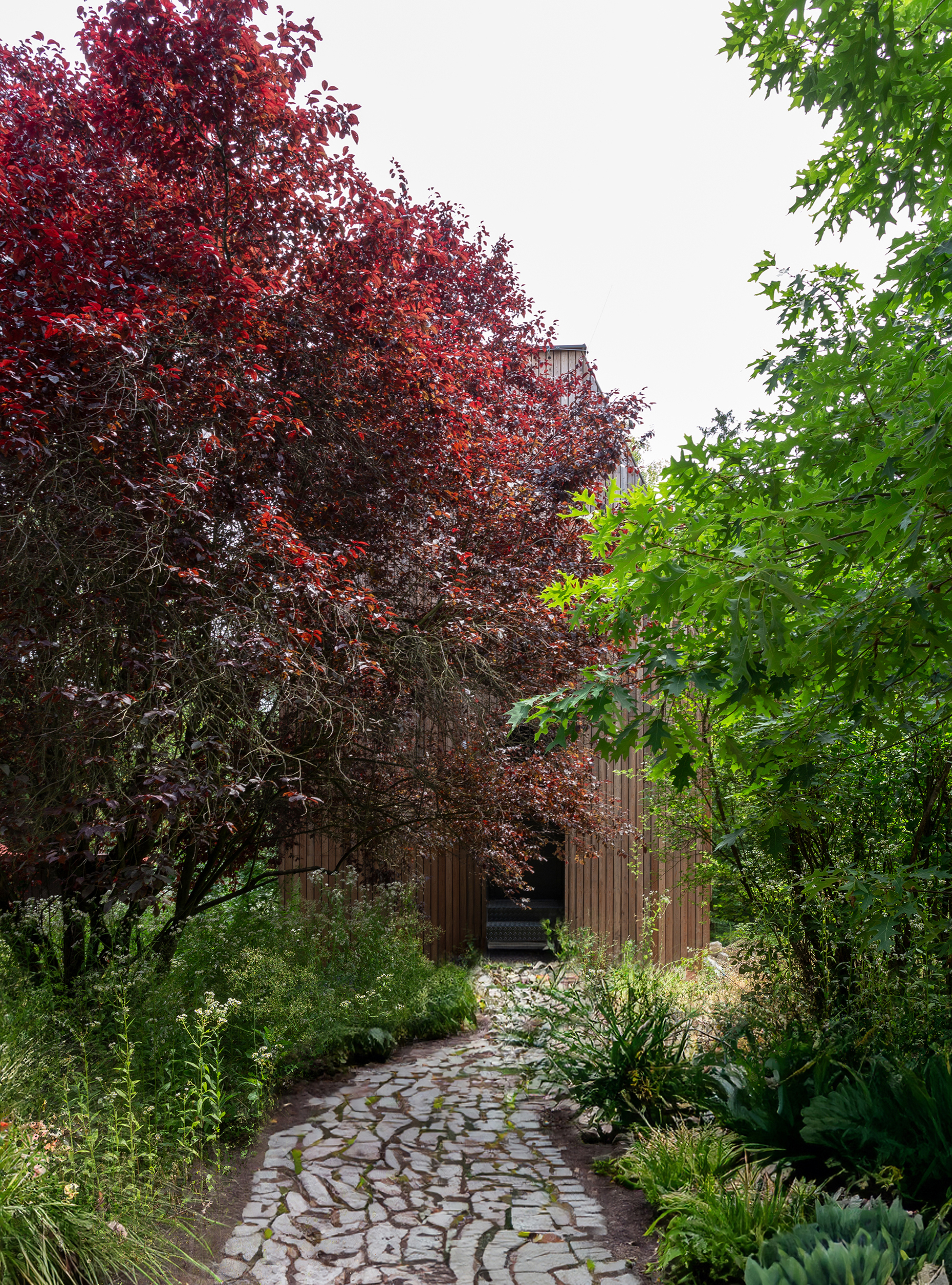 Zásah člověka by neměl být v území téměř patrný. Specifický dům a zahrada zrcadlí hlubokou vášeň pro umění jeho majitelů. Návrh vznikal v intenzivním dialogu, ve kterém se věnovala péče každému detailu.