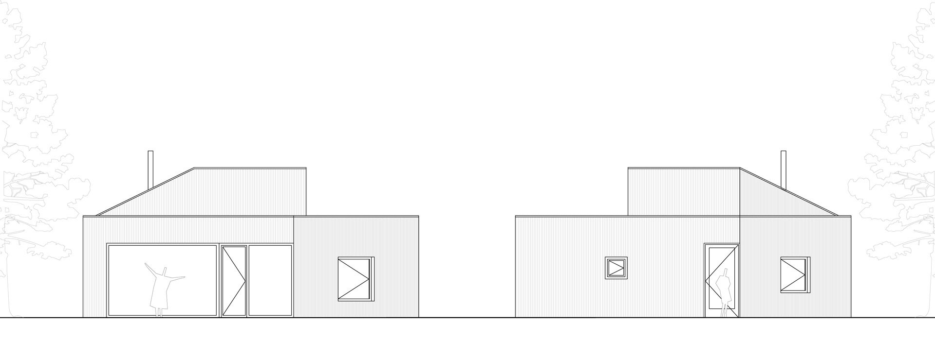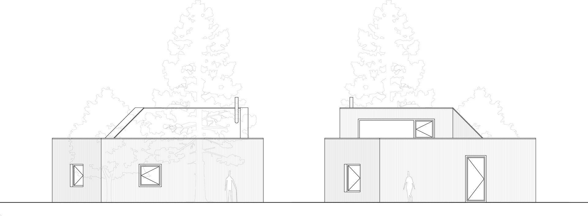Do prostředí klidné rezidenční čtvrti v obci Kamenice na jihovýchodě Prahy navrhujeme novostavbu rodinného domu pro čtyřčlennou rodinu na rovinatý nárožní pozemek se stávající jednopodlažní chatkou. Hmotu domu umisťujeme do středu pozemku tak, aby co nejméně kolidovala se stávajícími vzrostlými stromy. Nejatraktivnější jihozápadní fasáda zprostředkovává kontakt domu se zahradou v maximální možné šířce. Vzniká čtvercový půdorys bez chodeb, kde jsou jednotlivé pokoje přístupné přímo z členitého centrálního obytného prostoru. Úpravou tvaru zkosením v rozích orientujeme přilehlé pokoje optimálně vůči světovým stranám. V převýšené hmotě nad obývacím pokojem, která je orientována na výhled do krajiny, vzniká prostor pro hosty, případně pro pracovnu.