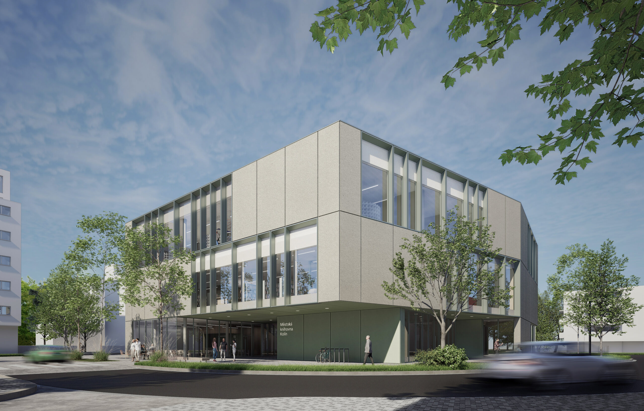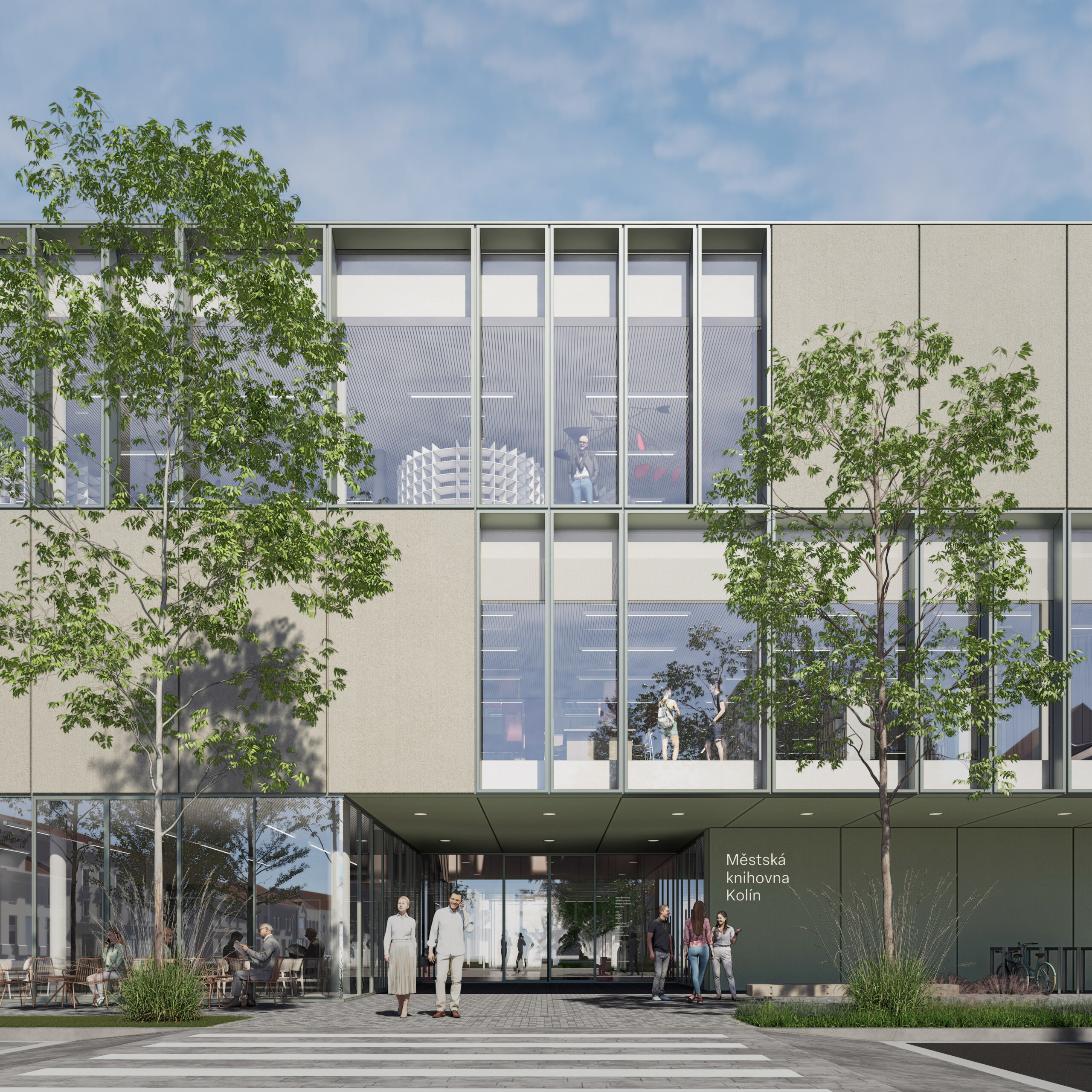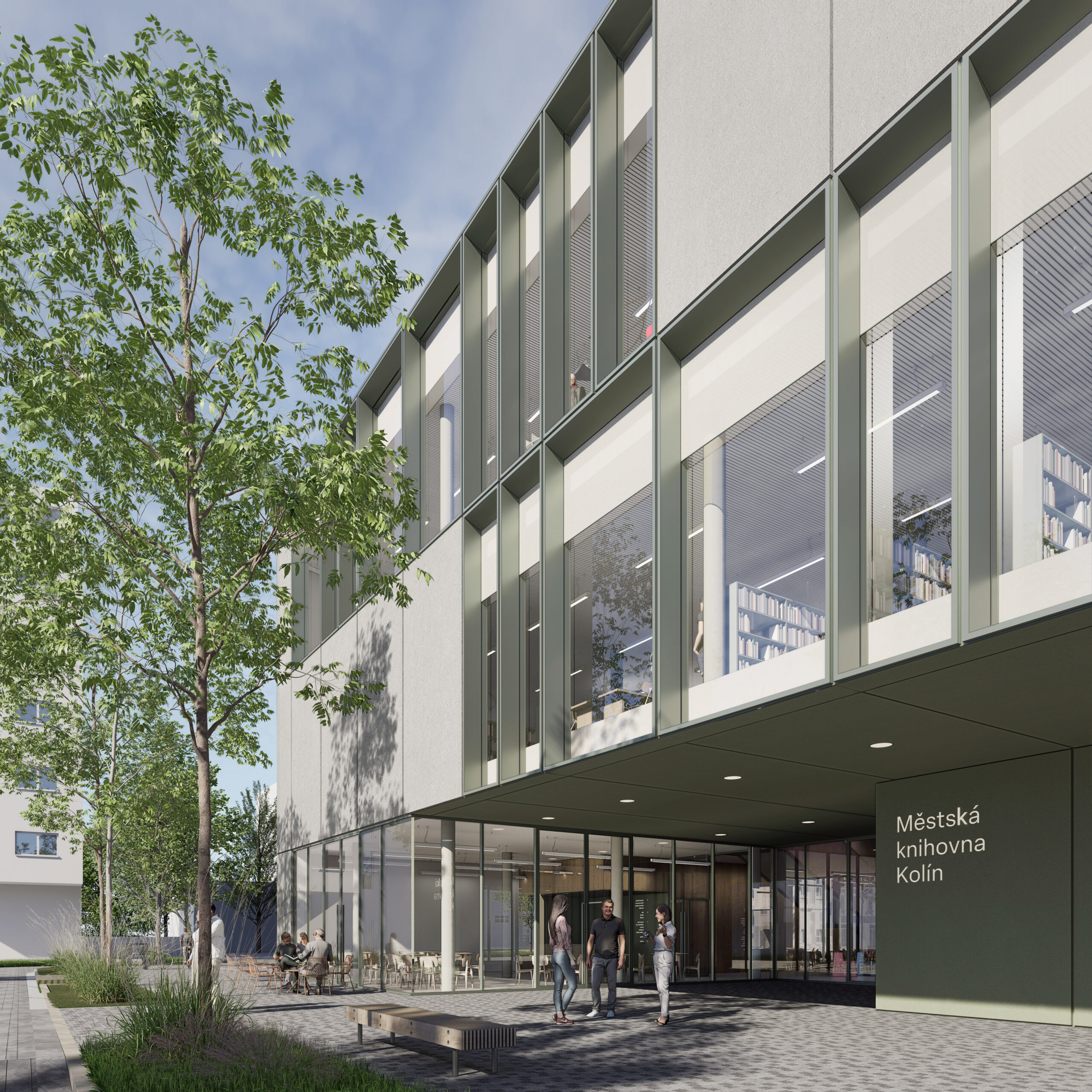 Novou budovu kolínské knihovny koncipujeme nejen jako místo k uskladnění a výpůjčce knih, nýbrž jako moderní kulturní centrum s respektem k okolnímu městskému kontextu.