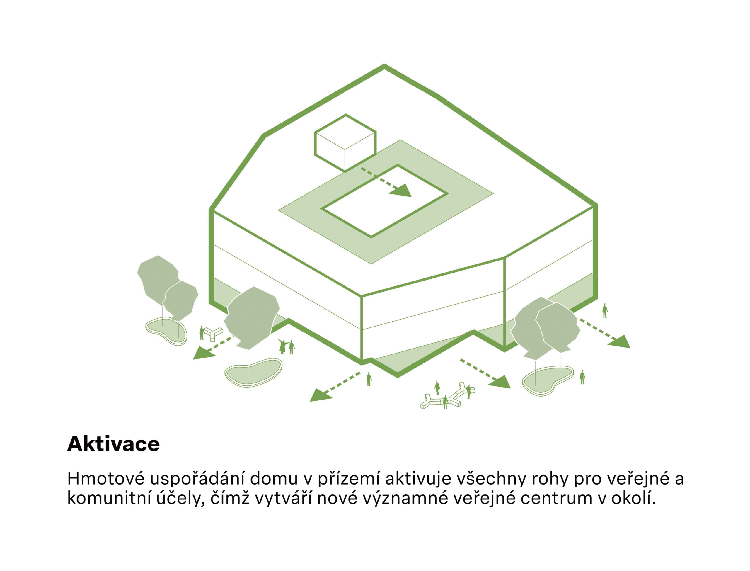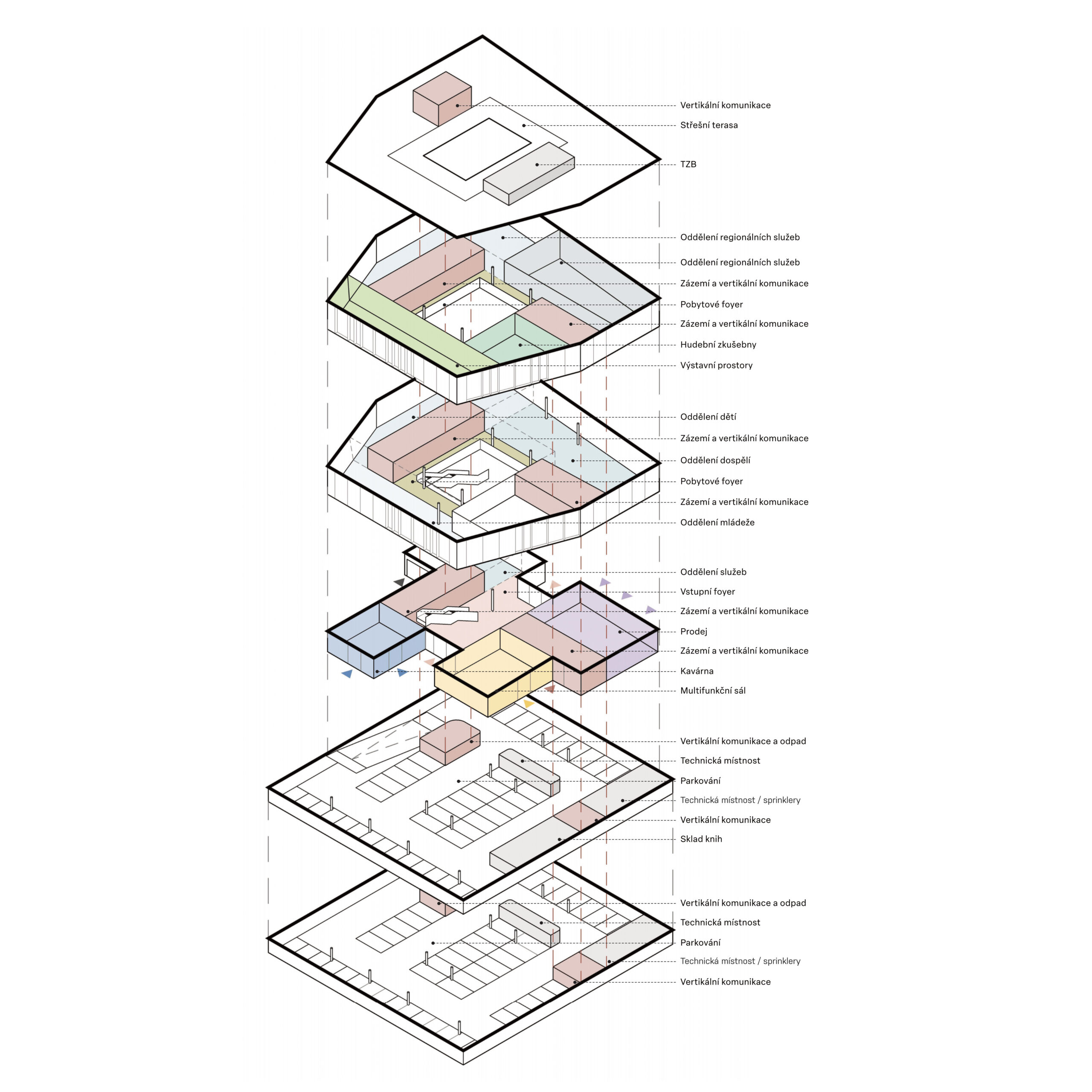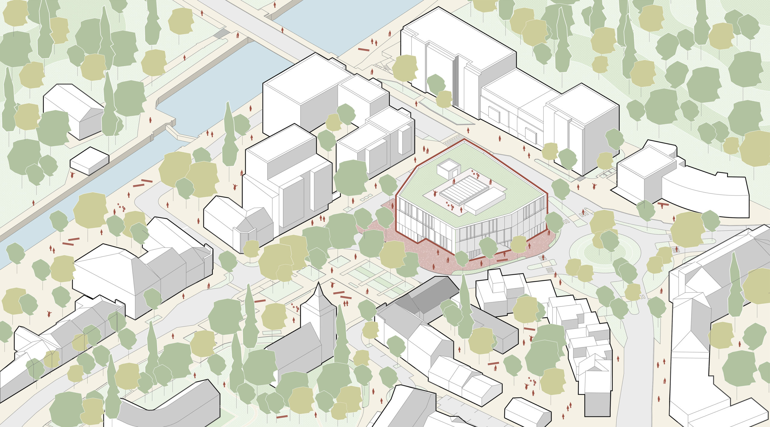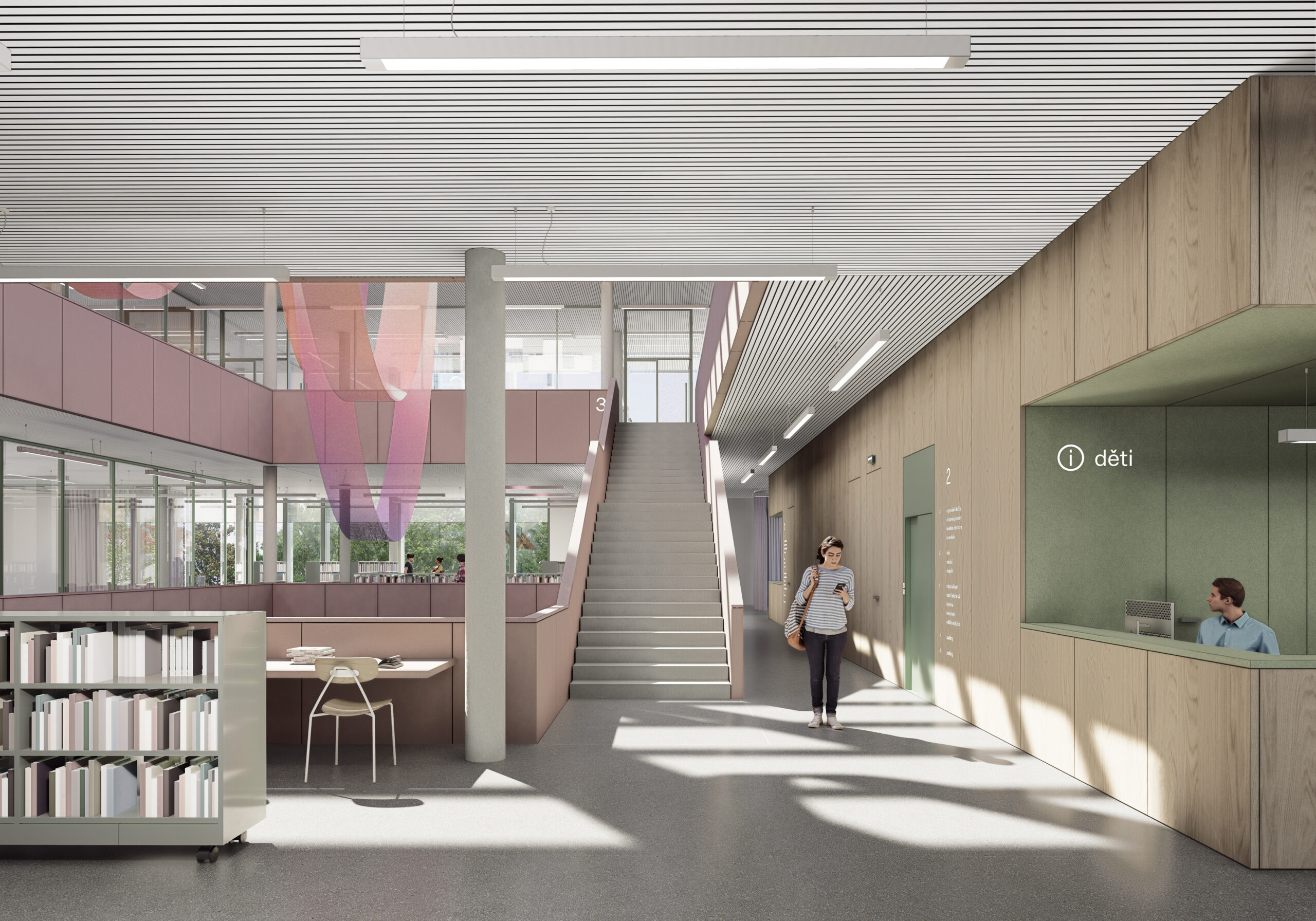Novou budovu kolínské knihovny koncipujeme nejen jako místo k uskladnění a výpůjčce knih, nýbrž jako moderní kulturní centrum s respektem k okolnímu městskému kontextu.