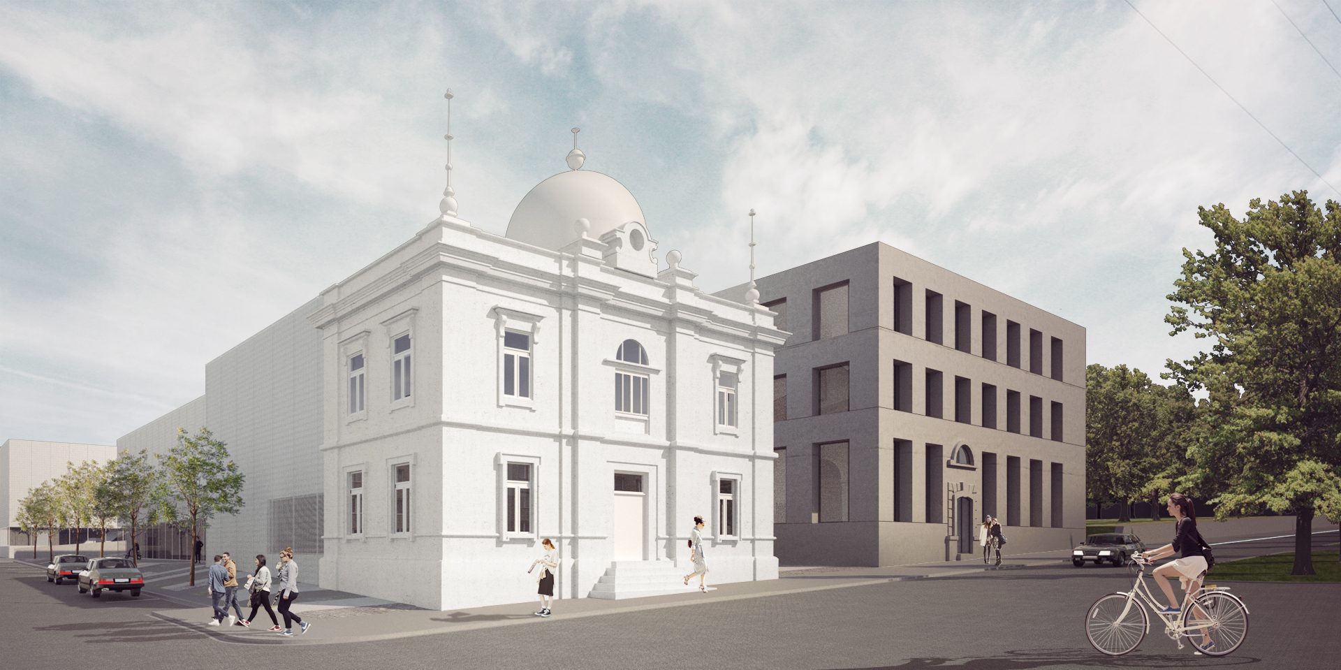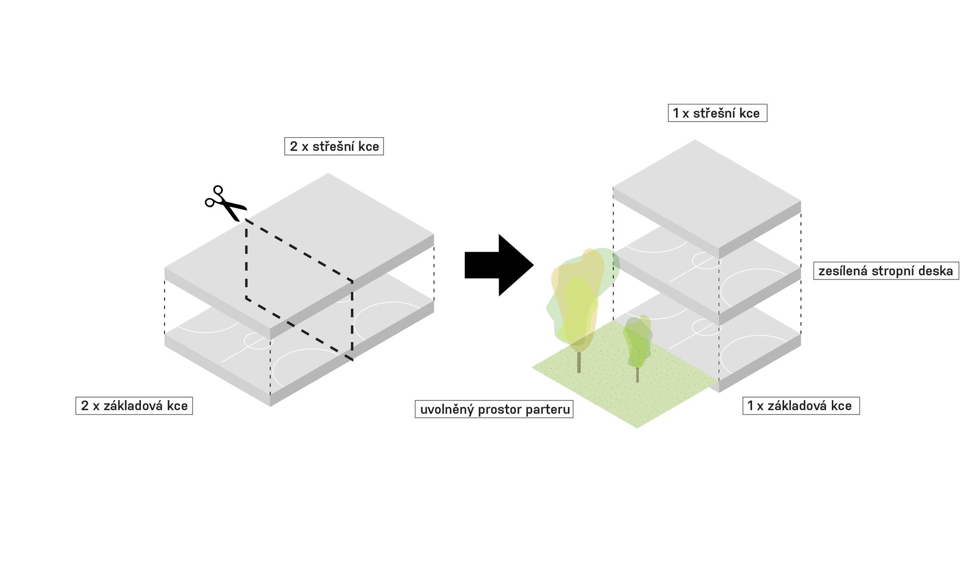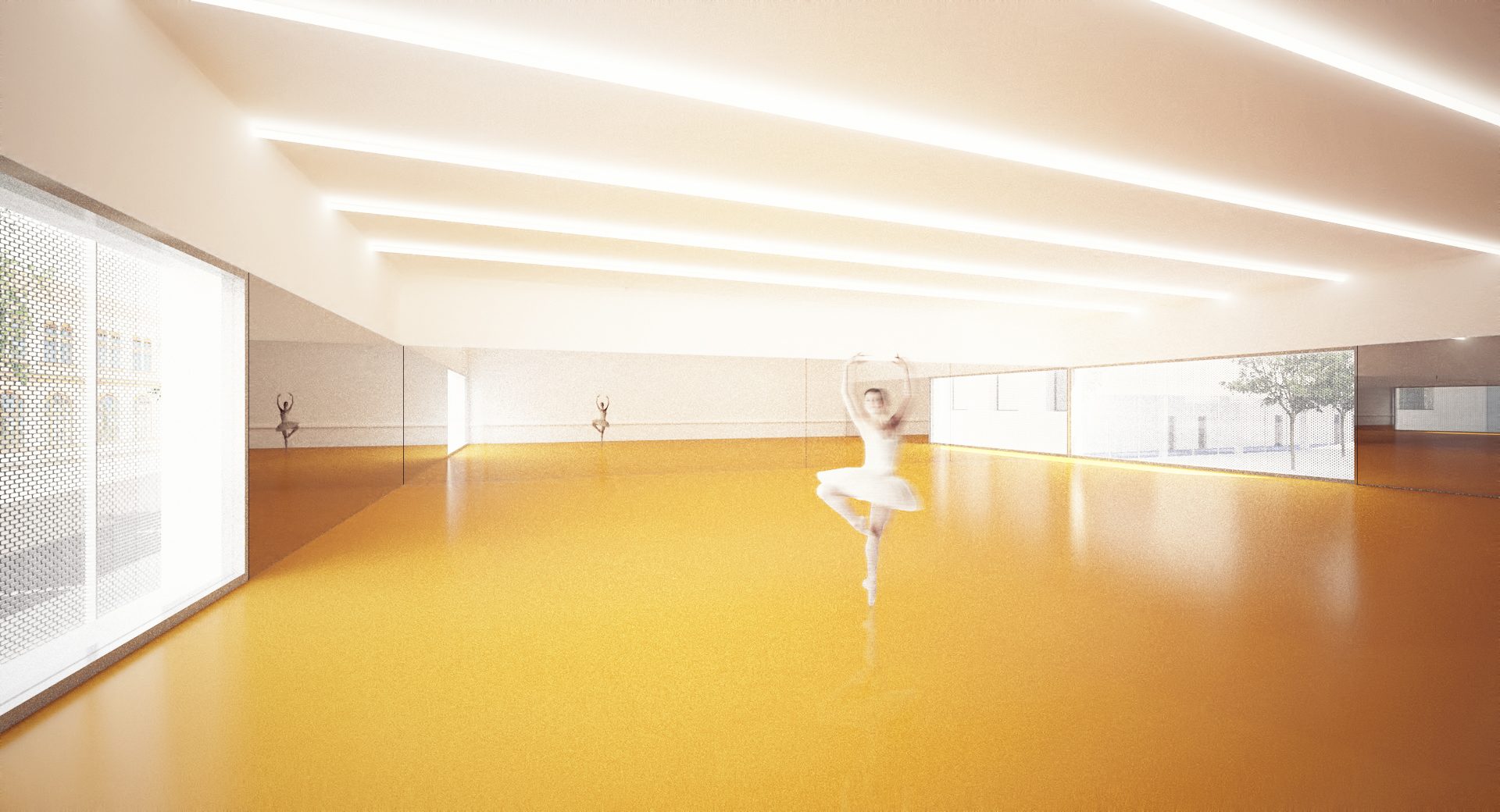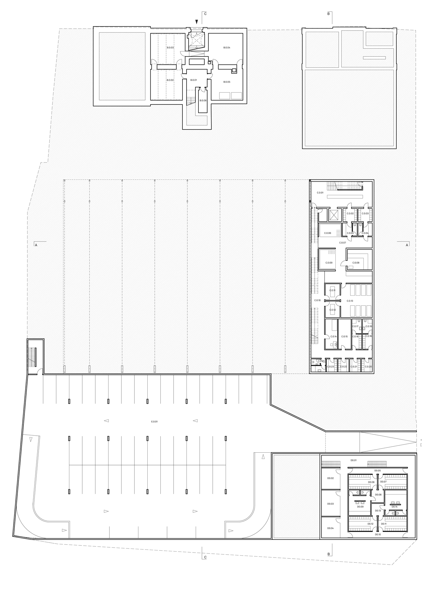 Sportovní areál Sokola v Chrudimi je situováno na významné ose staveb občanské vybavenosti, která plynule stoupá od Resselova náměstí a je ukončena výraznou hmotou objektu bývalé sokolovny a navazujícího Tyršova domu. Přestože má areál takto významnou polohu v kontextu města, působí v současnosti jako bariéra v území. Návrh si klade za cíl především zpřístupnění a napojení areálu na okolní veřejné stavby a prostory. Rozdělení požadovaného programu do jednotlivých samostatných objektů – pavilonů, vytváří porézní městskou strukturu, umožňující návštěvníkům přístup na malé piazzetty mezi jednotlivými objekty z několika klíčových míst navazujícího veřejného prostoru. Jako důležitá součást návrhu je propojení se sousedním Michalským parkem s dominantou kostela svatého Michala. Rozdělení stavebního programu do více samostatných objektů umožňuje navíc požadovanou etapizaci výstavby. Objekt sokolovny a to především jeho západní fasáda do Tyršova náměstí je výraznou dominantou při průhledech z náměstí. Tragédii tohoto původně krásného objektu jsme se rozhodli napravit obnovou části jeho fasády do původního stavu z roku 1892. Sokolovna by měla znovu být „landmarkem“ celého areálu. Skutečnost, že je areál obklopen hned několika školami, předpokládá intenzivní využívání piazzett a navazujícího Michalského parku rovnoměrně po celý den.