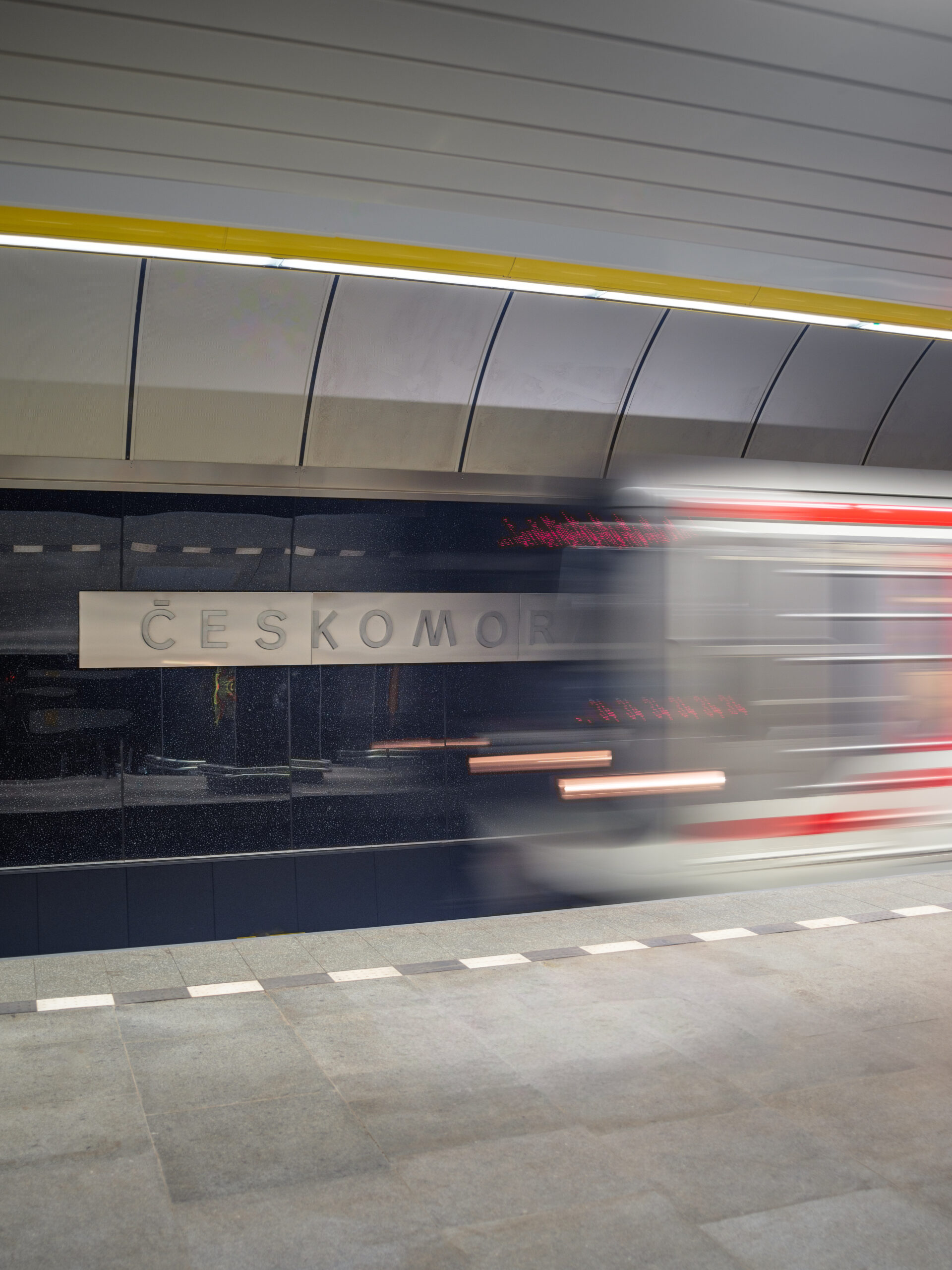 Přistupujeme k redesignu Českomoravské v kontextu nových změn zapříčiněných developmentem v této oblasti. Kontext stanice chápeme v celé šíři linky linky B, kde jednotlivé stanice sjednocují určité přístupy, tvary pilířů, struktury a rastry. Snažili jsme se tedy spíše o evoluci než revoluci. Českomoravská získala specifikum i díky stavbě O2 arény, kdy touto stanicí projíždí nadměrný počet lidí z celého města i republiky v návaznosti na konání akcí.