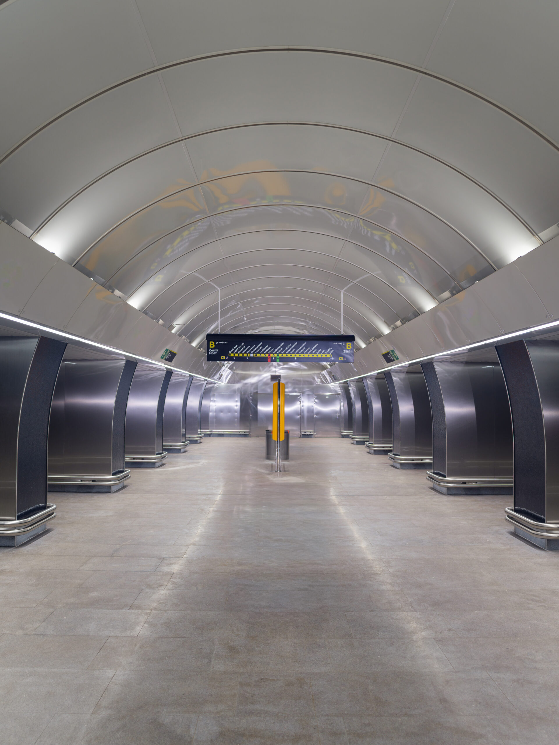 Odstupy, distance pilířů, typ ražení a trojlodí mají své specifické limity narozdíl od hloubených jednolodních stanic, kdy člověk vnímá stanici v jiné perspektivě, a tak systém založený na decentním a zároveň unikátním povrchu dlaždic či skel se vzduchem nabízí strukturu a hloubku, ve které si pozorující cestující může objevovat svůj vlastní mikrokosmos.
